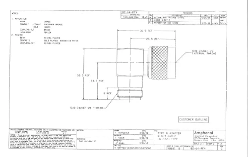 These are NEW still in the packaging 82-64-RFX Amphenol Adapters. They are N-Female to N-Male right angle cube gold contacts with nickle finish.