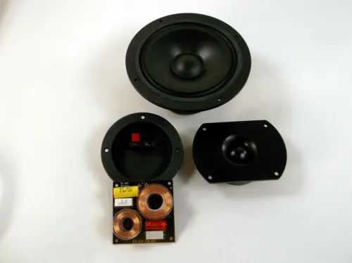 To 8" basshøyttalere, to Samsung diskanthøyttalere og to 12dB delefiltere, den totale arbeidsimpedansen er 8 ohm.