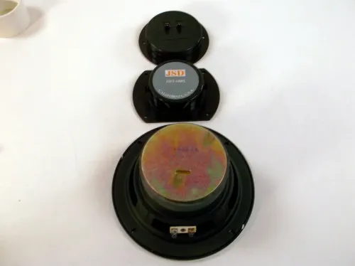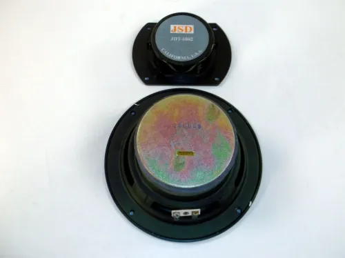 Du får et par av hver, du får to 8" JSD Wide Flange 8 Ohm basshøyttalere, de vil gi deg en fin rekkevidde og bassrespons, ned til under 40 Hz.
